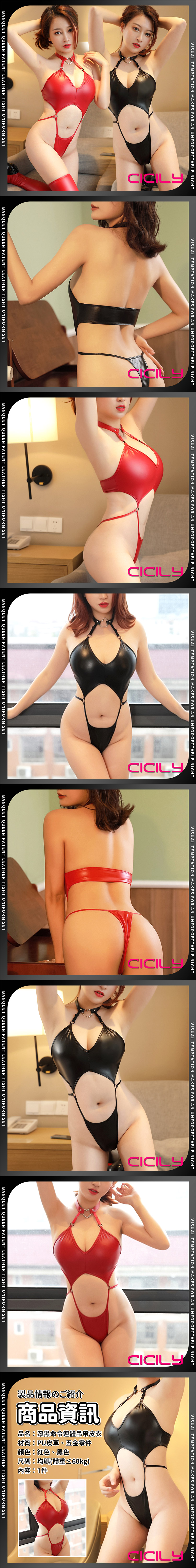 品名:CICILY|漆黑命令 連體緊身漆皮吊帶衣 紅